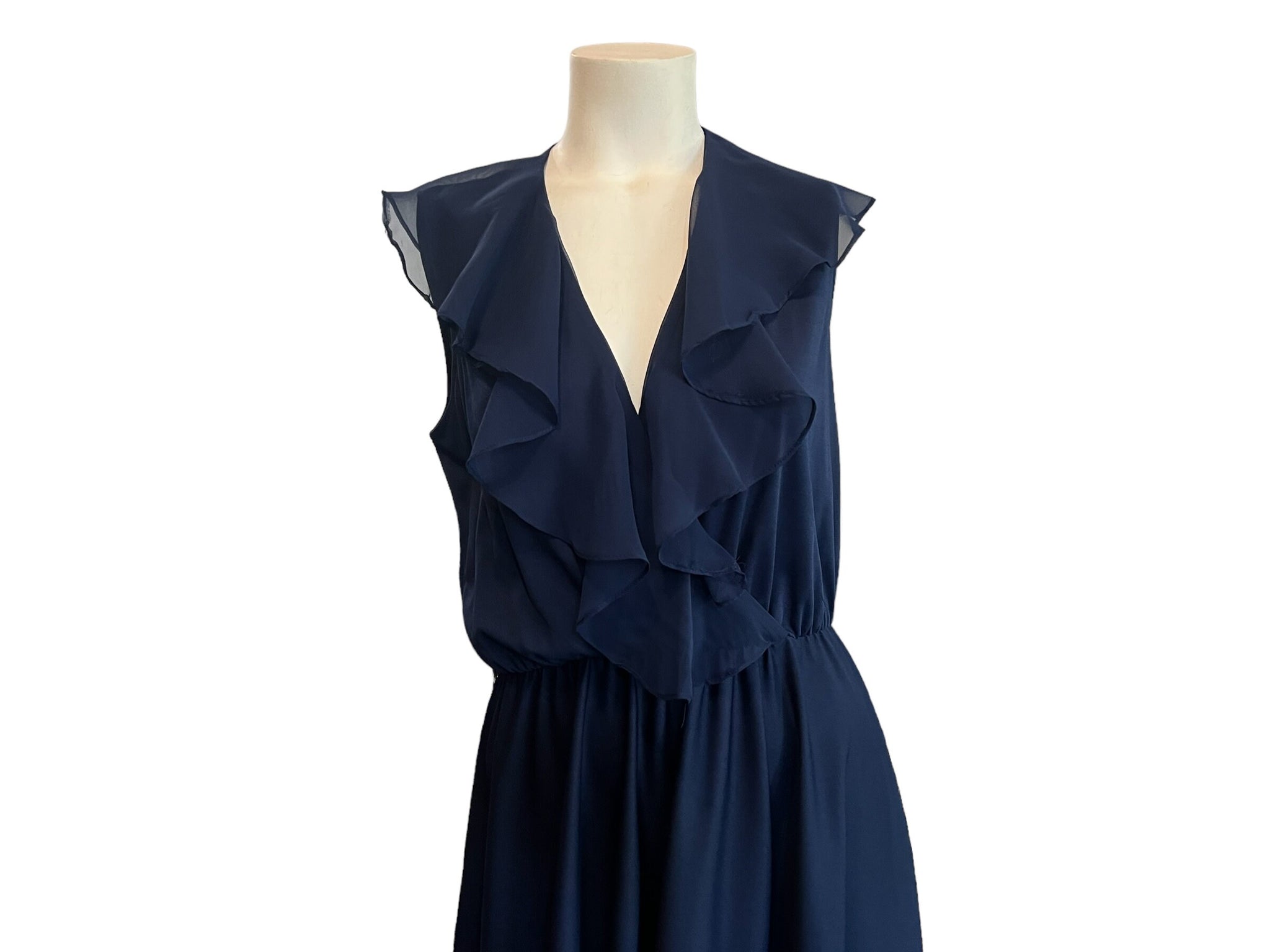 Vintage 70's dress, tag says Diamond Run, sz 11- more of a medium, polyester. Dress has wrap bust with ruffles, elastic waist, full skirt, in great condition, measurements are