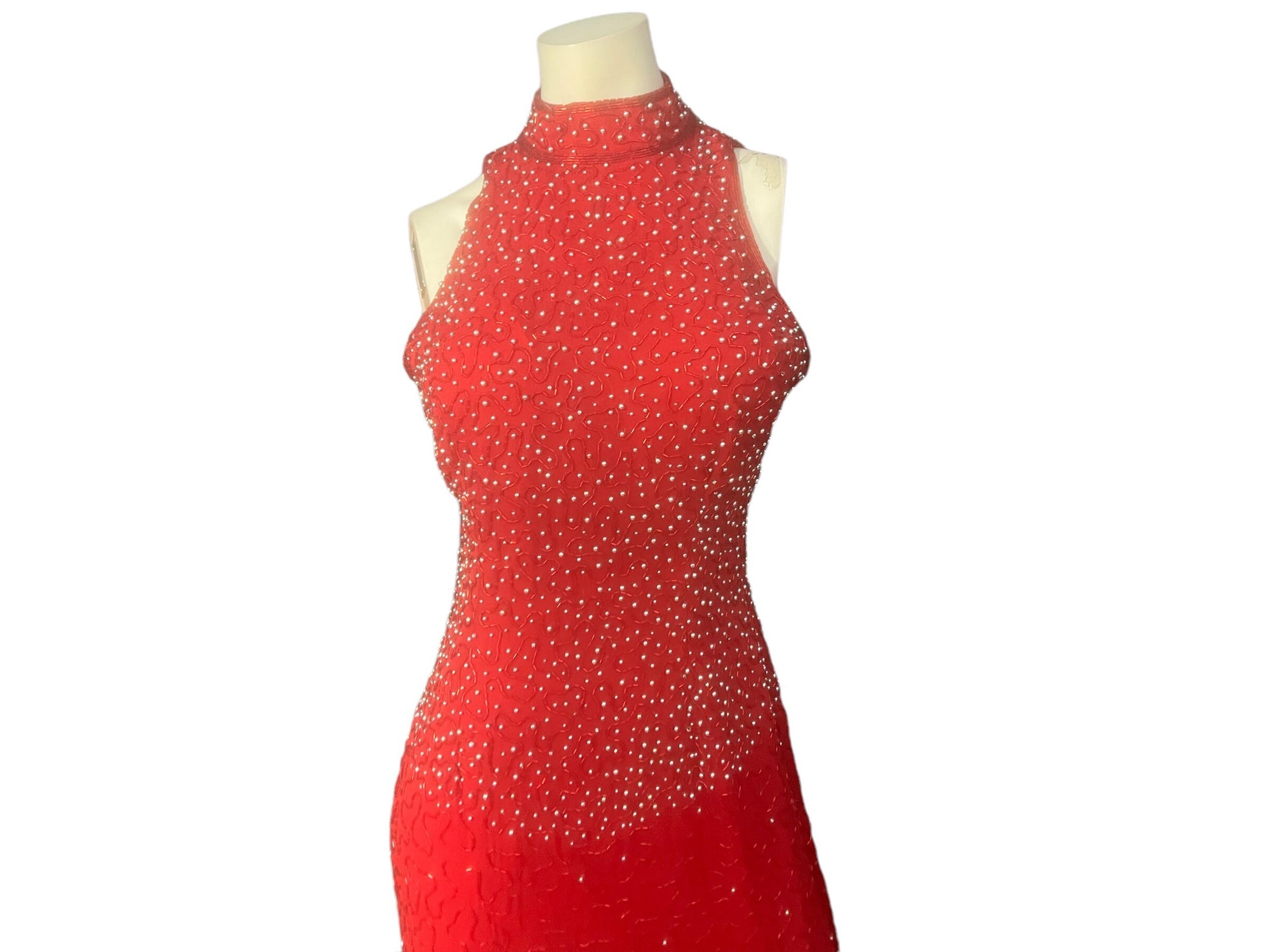 Vintage 80's bead % sequin red long dress M Mikhaelangela