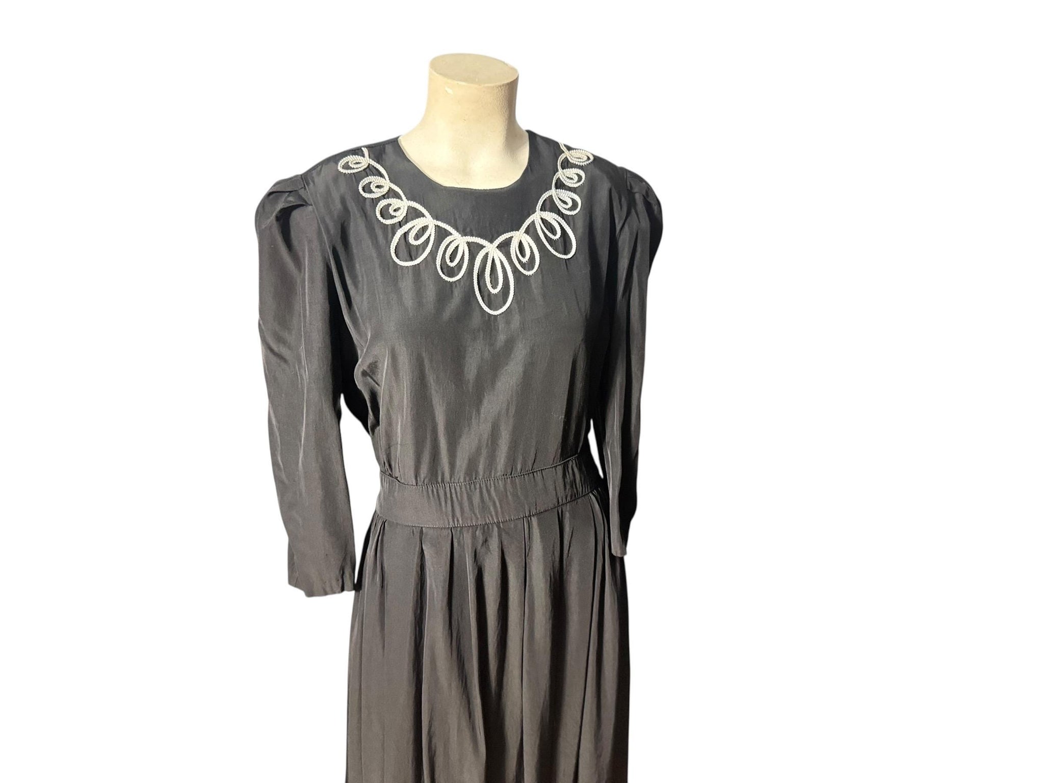 Vintage 80's black and white dress, tag says Ultra Dress, sz 10, follow measurements, 61% acetate 39% rayon. Dress buttons up the back, shoulder pads, no stretch, has elastic at the waist, fitted, in great condition, measurements are