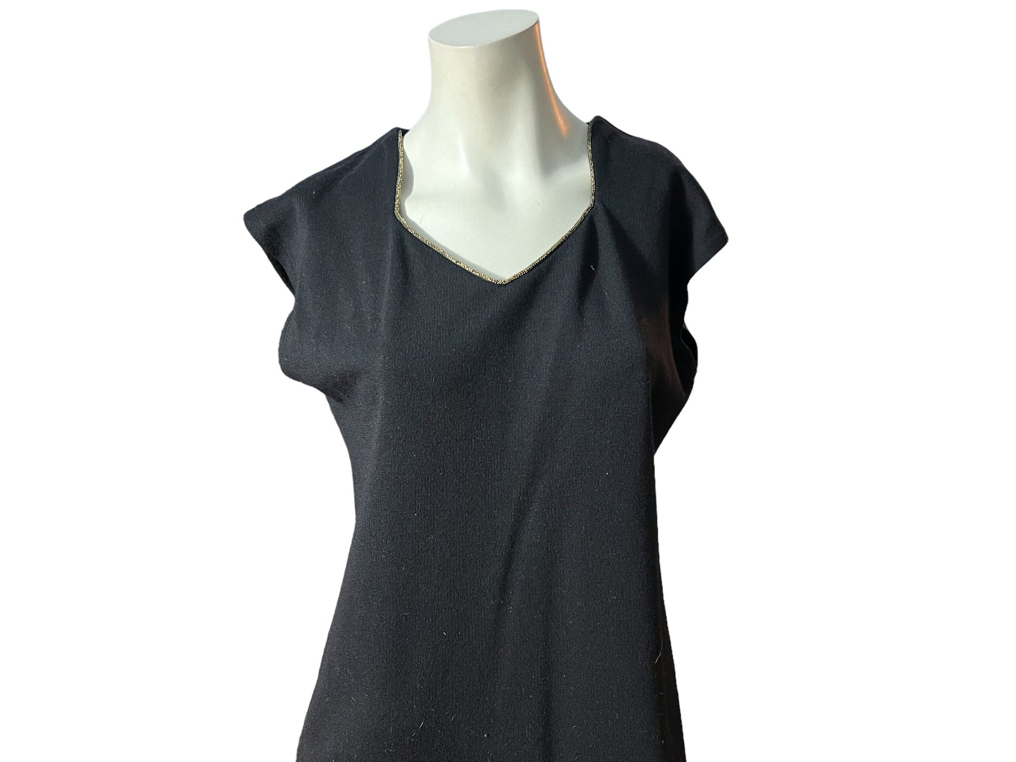 Vintage 80's black knit dress, gold trim around the neck, gold trim around the neck. Dress has stretch, no tags, dress is in good condition, measurements are