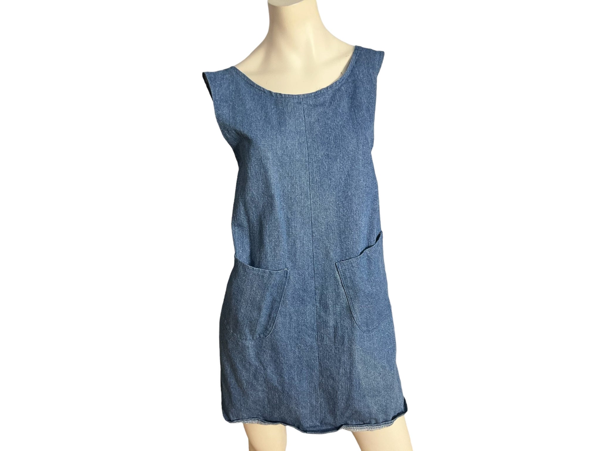 Vintage blue jean handmade apron top, criss cross in back, has pockets, in great condition, measurements are