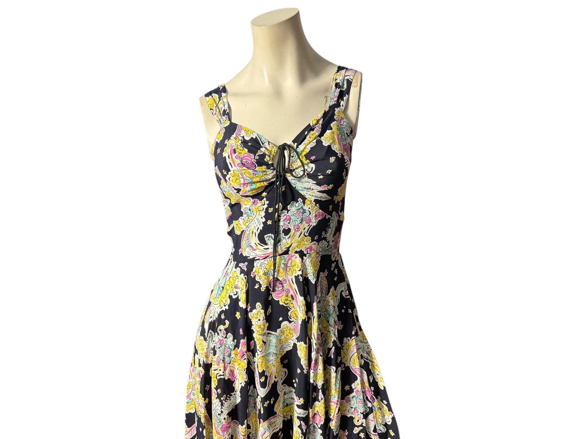 Vintage style sun dress, Trashy Diva, sz 6, zips up the back,has elastic on the back in great condition, measurements are