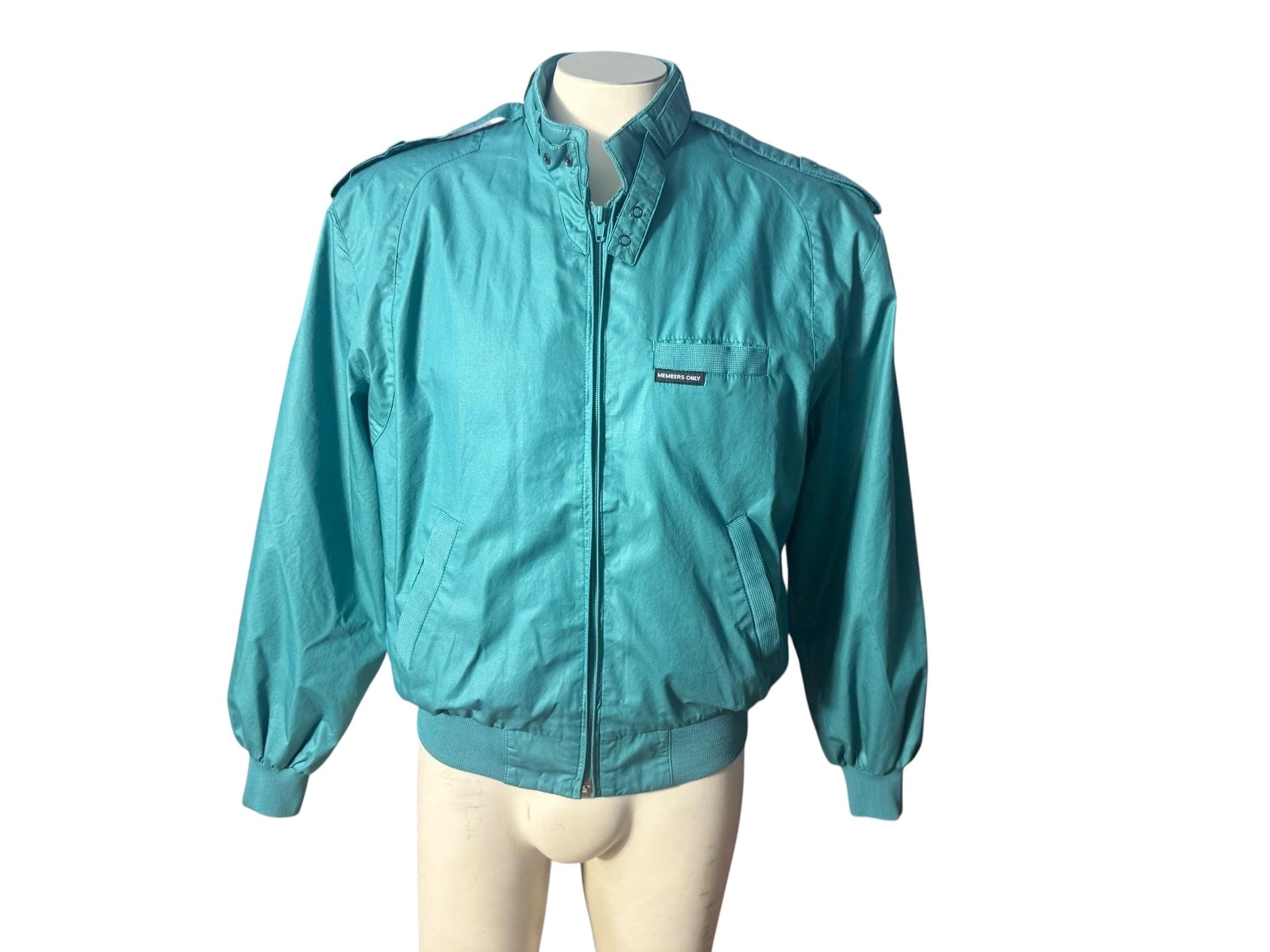 Vintage green 80's jacket, tag says Member's Only, sz 38, by Europe Craft. Jacket is light weight, fully lined, zips up the front, higher neck, snaps in the front. Jacket is in great condition, measurements are