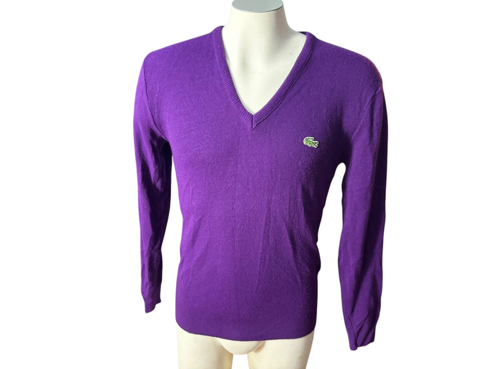 Vintage purple V neck sweater, tag says Izod, size M, has alligator emblem on sweater. Sweater is in great condition, measurements are