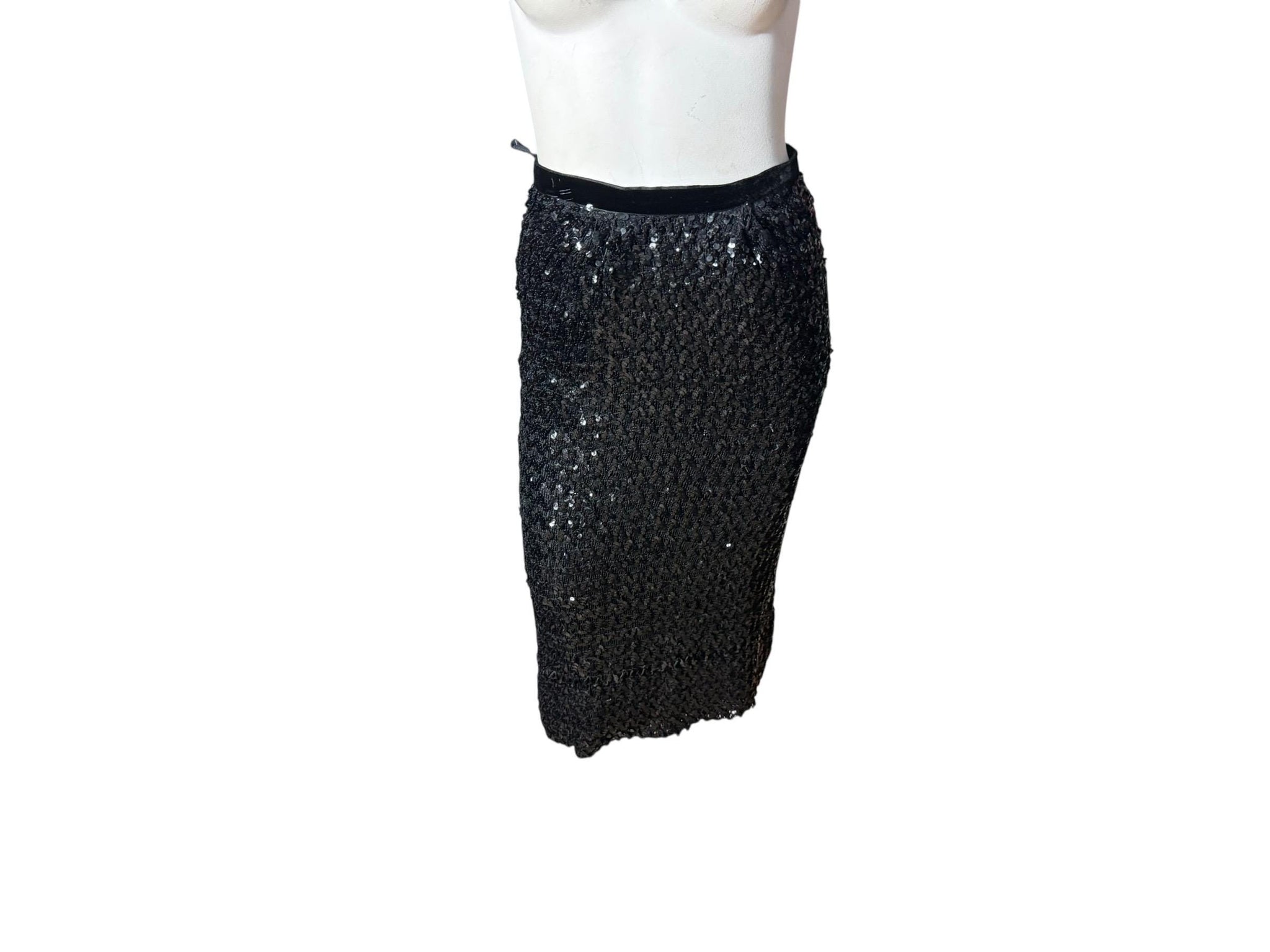 Vintage black sequin skirt, no tags, could be handmade. Skirt has black velvet waist, zips and clasps, skirt is in great condition, measurements are