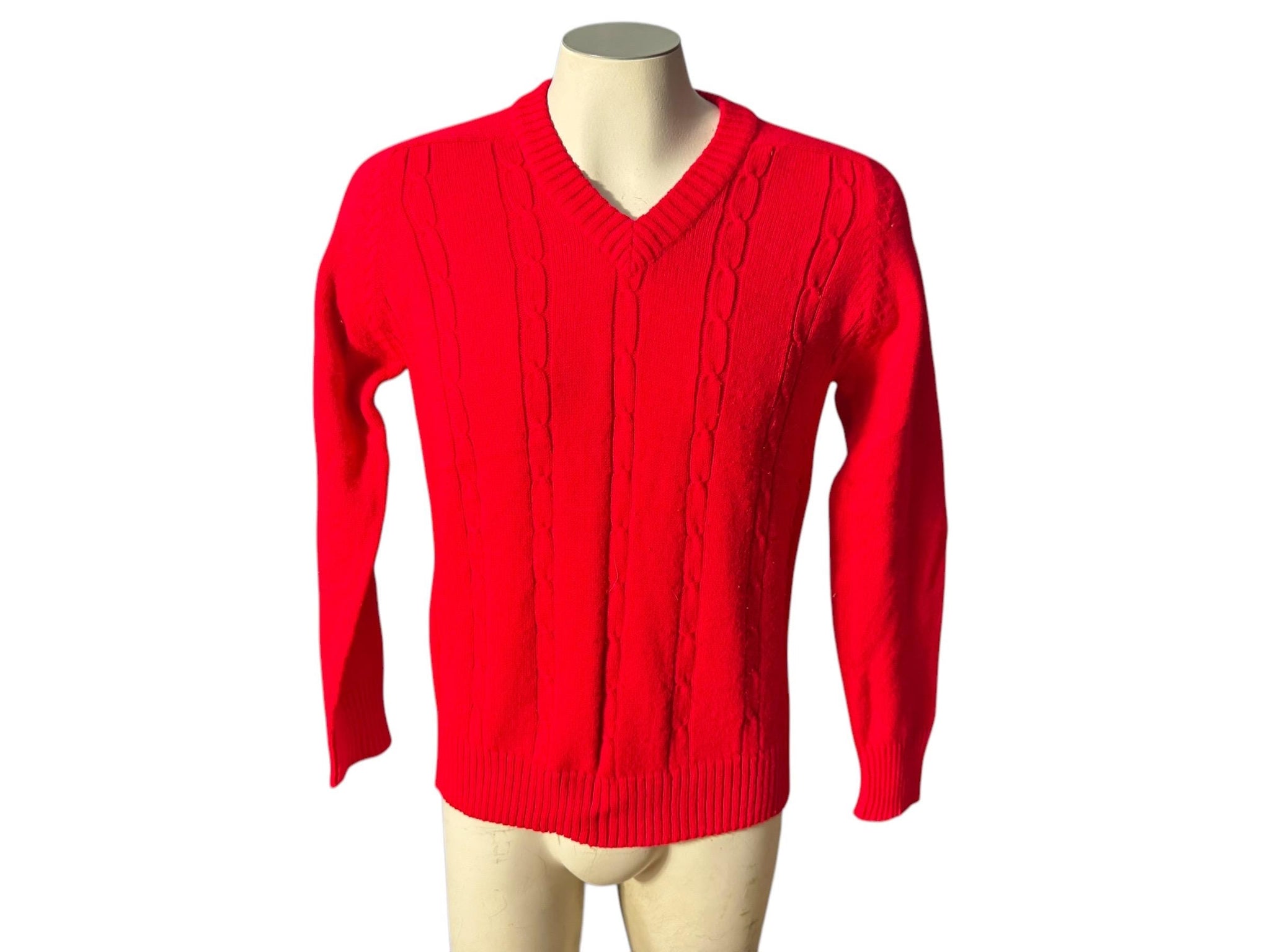 Vintage 70's men’s pullover sweater, tag says SportsWear Sears, sz M, 100% acrylic. Sweater is V neck, designs down the front, sweater is in great condition, measurements are