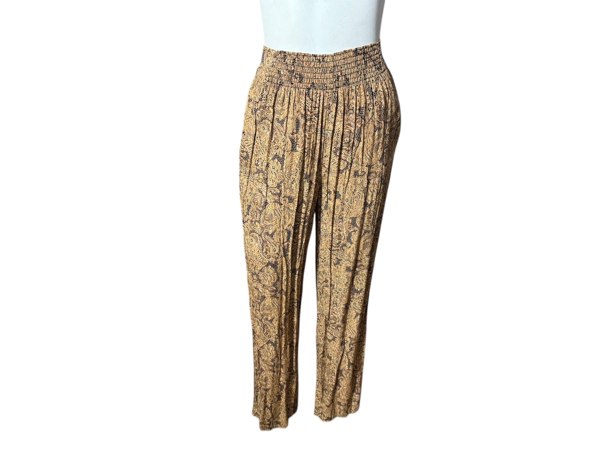 Vintage brown & black pants, tag says Carole Little, sz 4, 100% rayon. Pants are high waist, half elastic waist, straight leg, has pockets. Pants are in great condition, measurements are