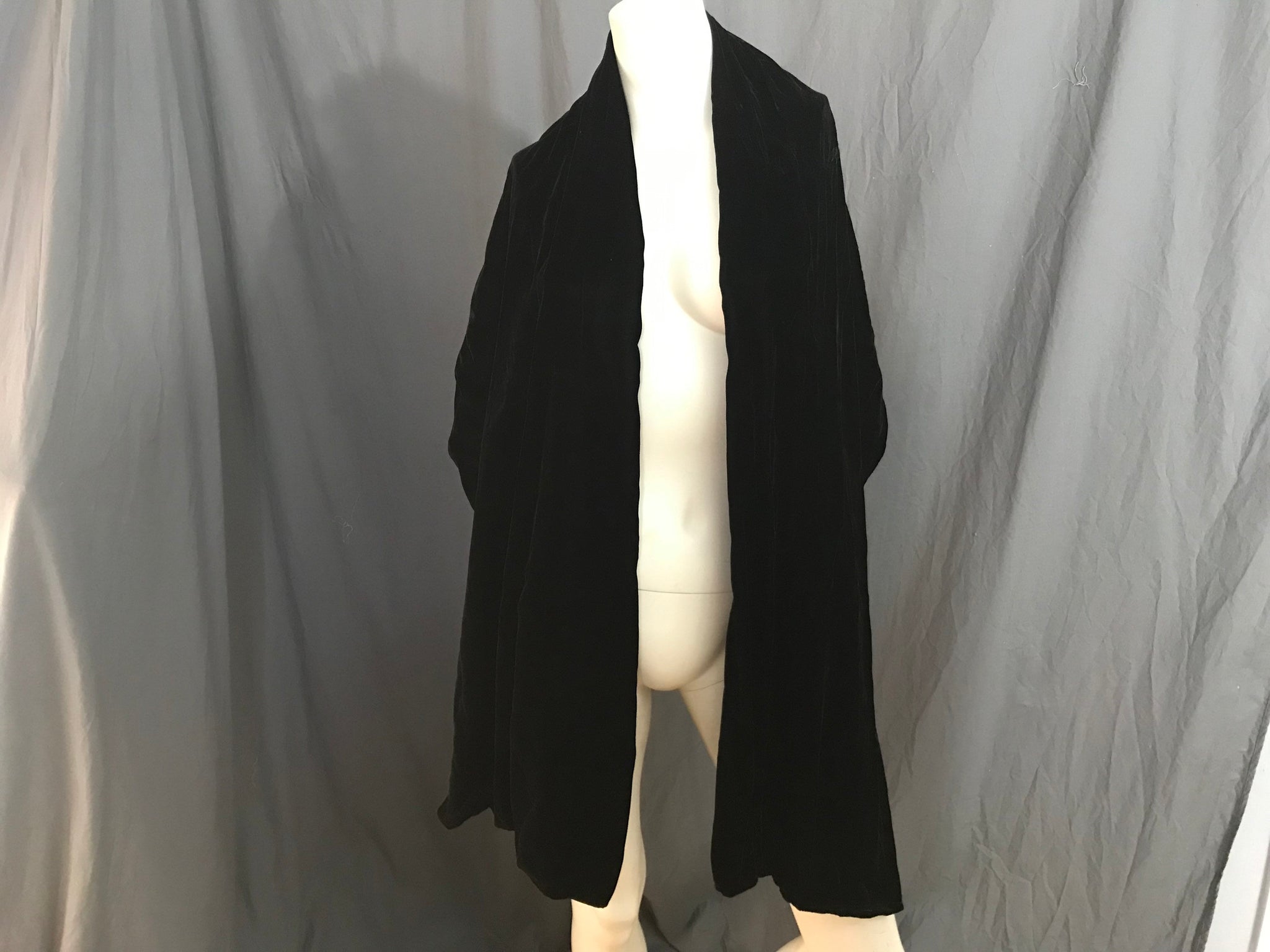 Vintage black velvet cap stole, no tags, looks to be handmade, stole is black velvet, measurements are