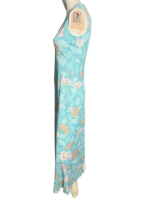 Vintage Blue Flower 1970's Maxi Dress & Shirt M