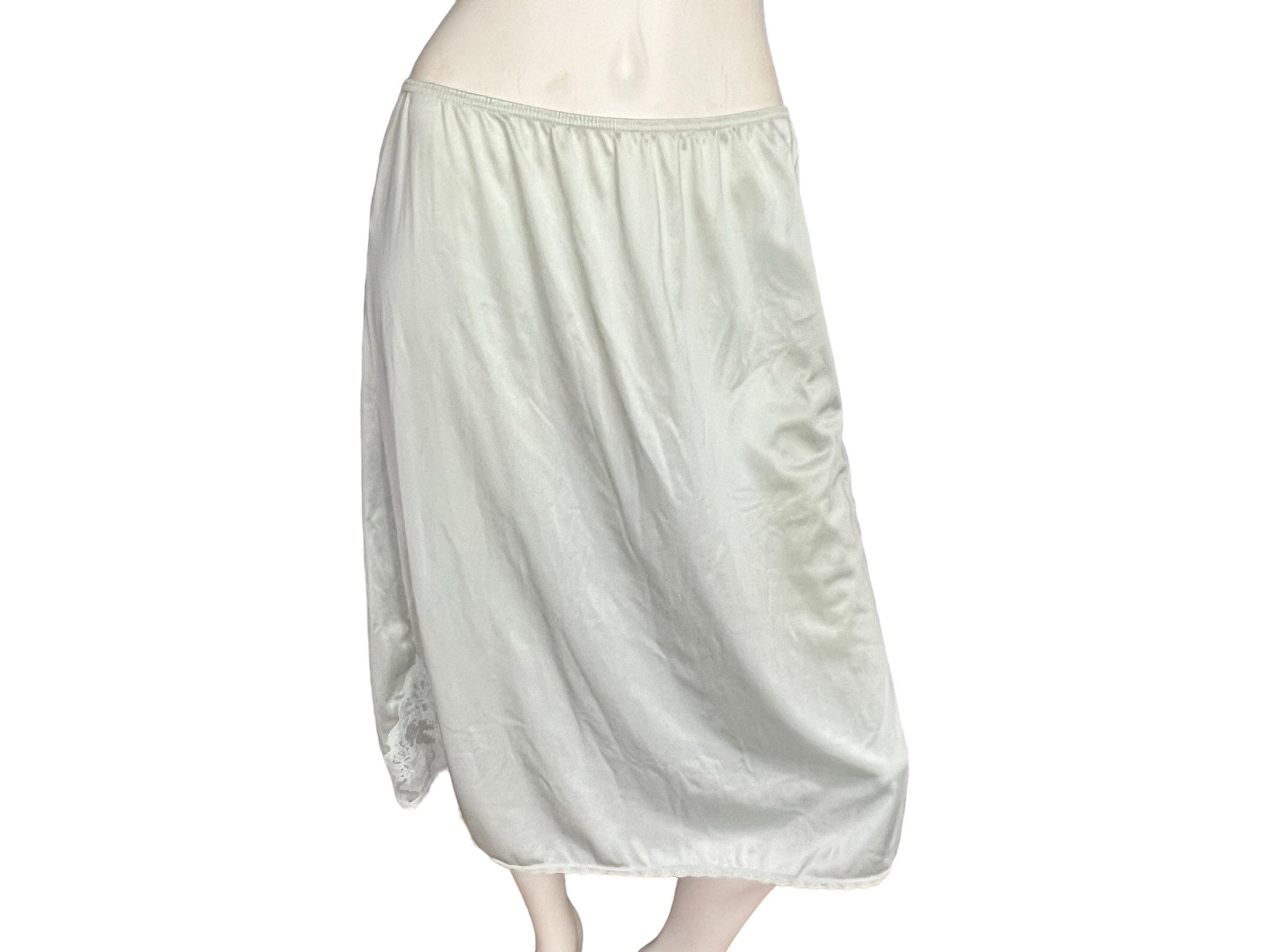 Vintage blue half slip, tag says Blush, sz L, 100% nylon. Slip has lace at the bottom, slip is in great condition, measurements are
