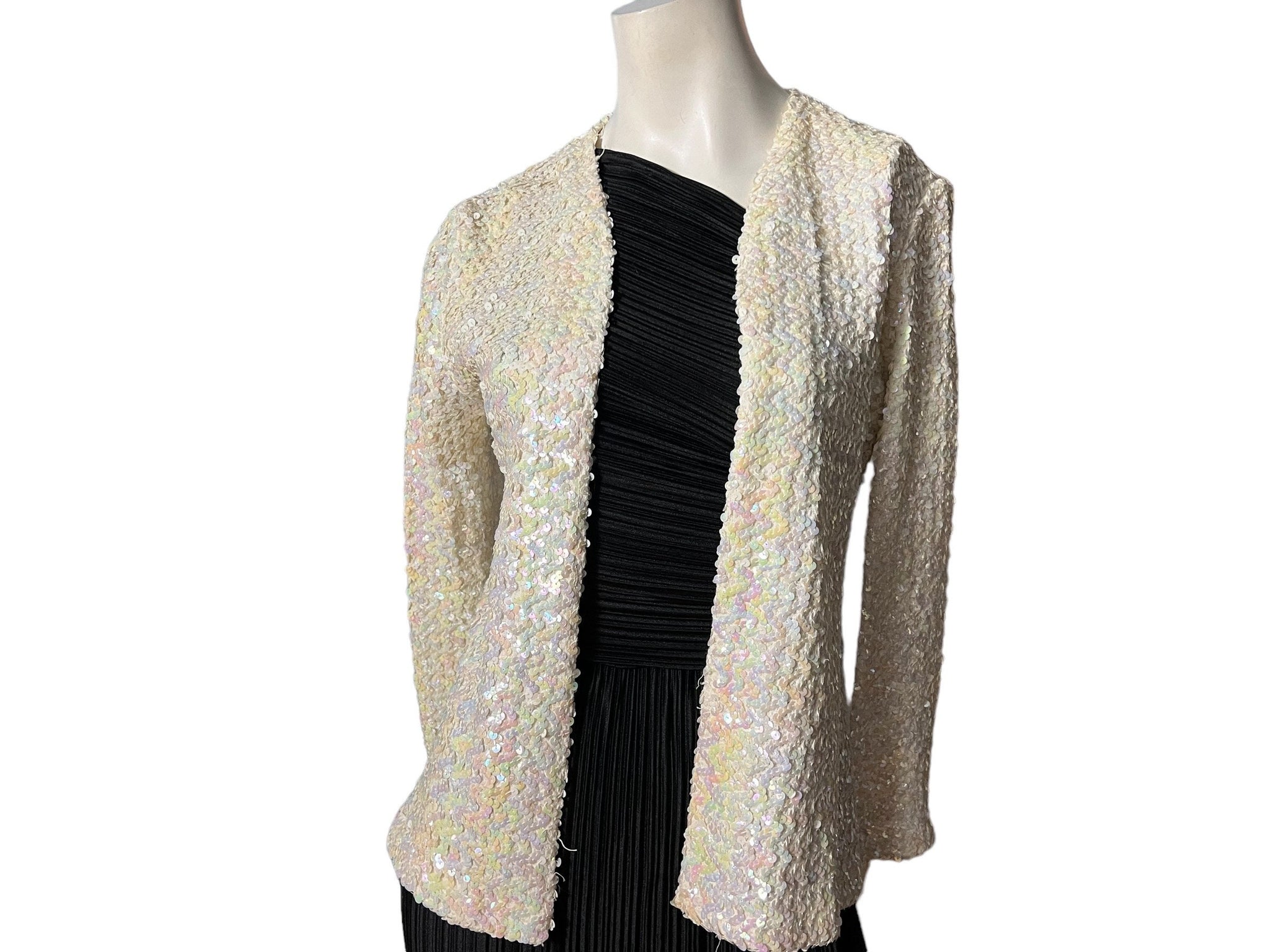 Vintage sequin jacket, pastel sheen. Jacket has stretch, no closures, in great condition, measurements are